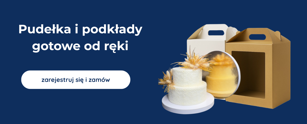 opakowania cukiernicze – pudełka na torty (z rączką, z okienkiem, weselne, komunijne, urodzinowe), pudełka na ciasta, pudełka na monoporcje, muffiny, makaroniki, tacki na pączki i drożdżówki,