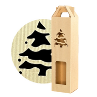 Pudełko na wino brązowe z prążkowanej tektury z choinką 4-elementową