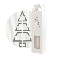 Pudełko na wino białe z prążkowanej tektury z choinką 4-elemetową